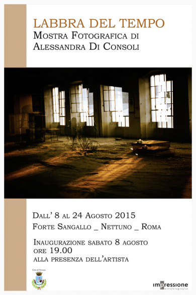 Dall'8 al 24 agosto 2015 si è tenuta, presso l'incantevole cornice del Forte Sangallo a Nettuno (Roma) la personale dell'artista Alessandra Di Consoli intitolata "Labbra del Tempo".