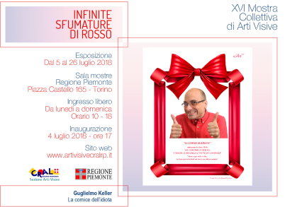 Dal 5 al 26 luglio 2018, presso la Sala mostre della Regione Piemonte, in piazza Castello 165 a Torino, si terrà "Infinite sfumature di rosso", appuntamento collettivo con le arti